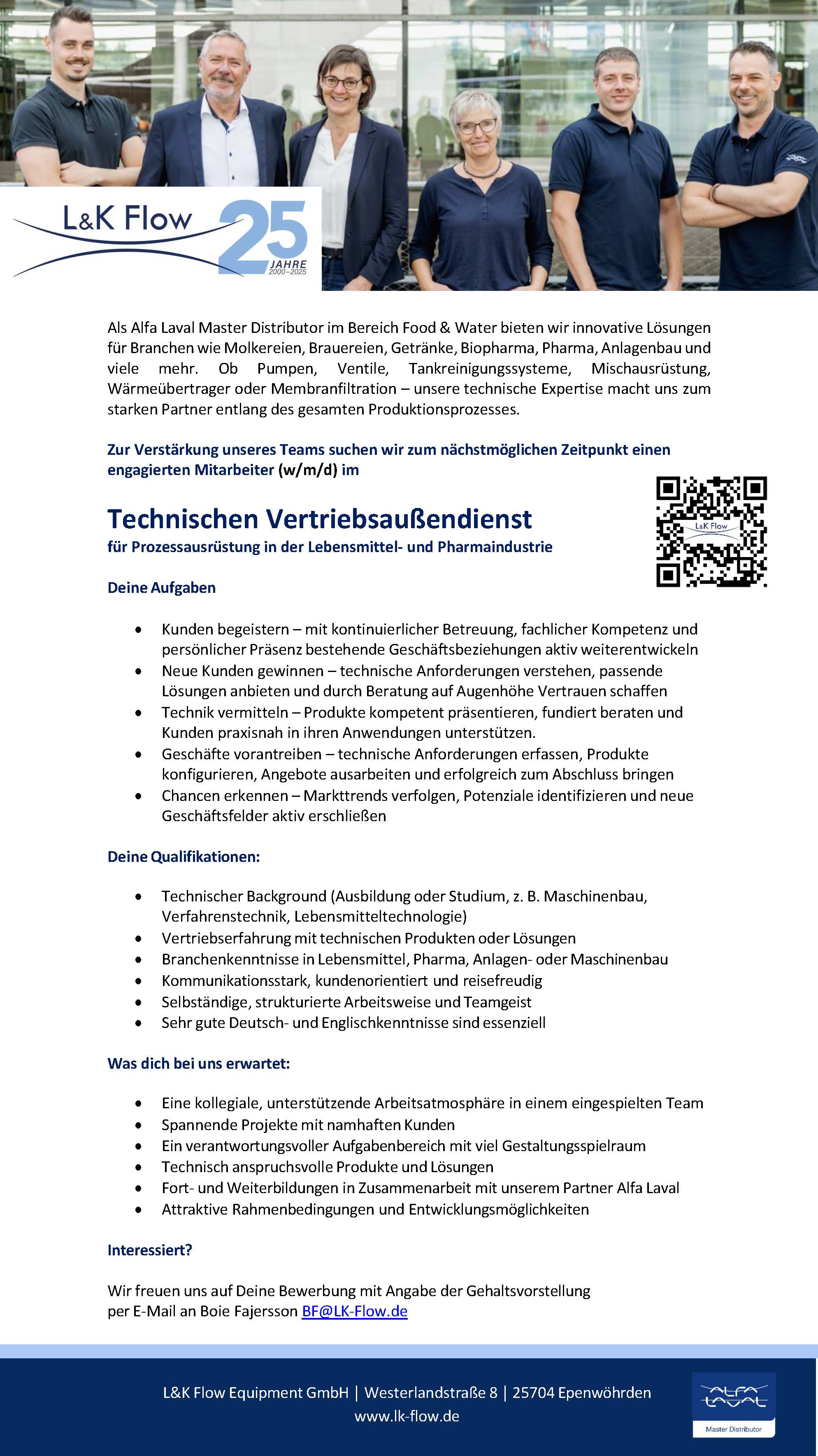 - Branchenkenntnisse in Lebensmittel, Pharma, Anlagen- oder Maschinenbau